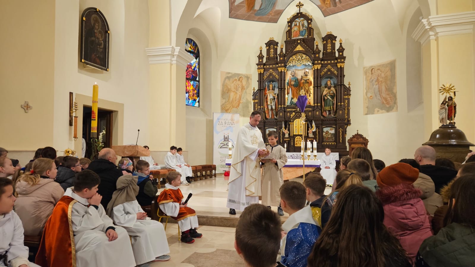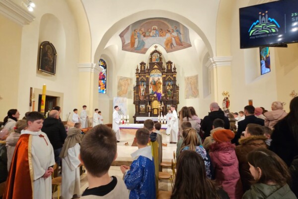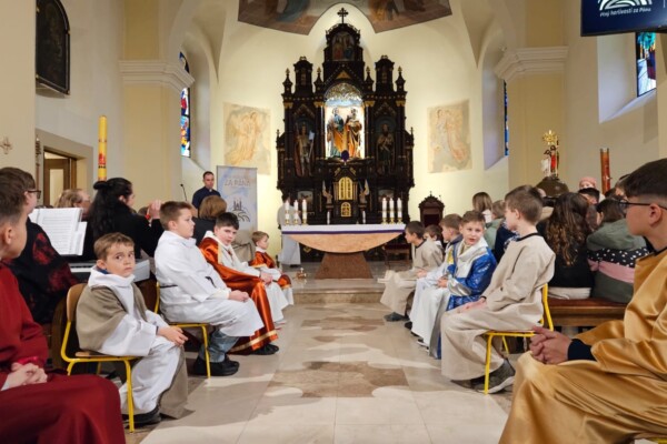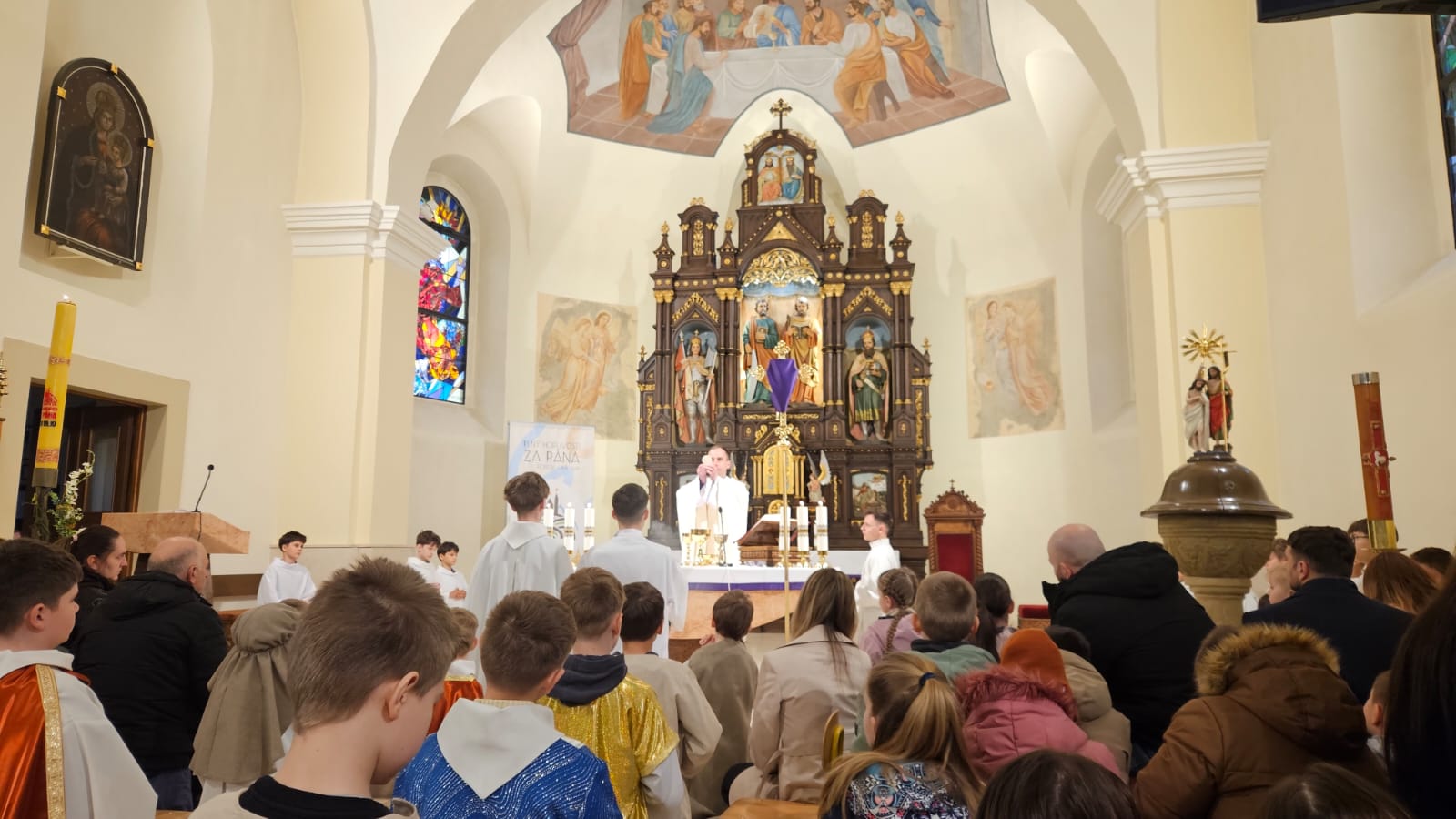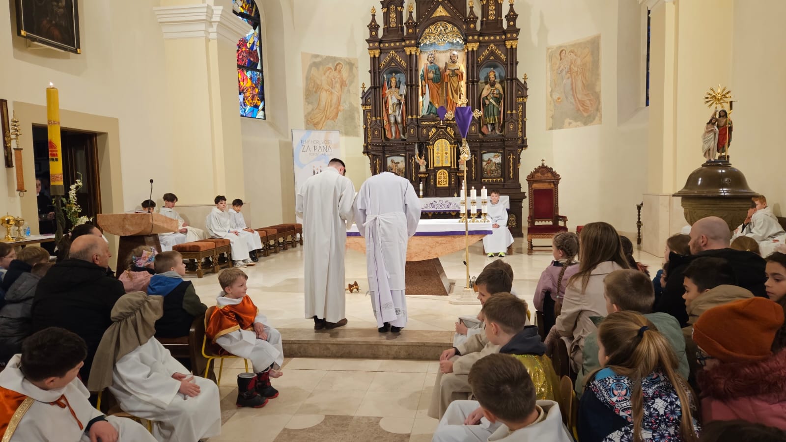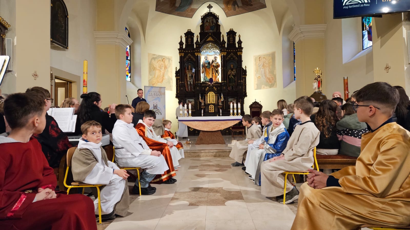 Pri sv. omši na Zelený štvrtok, upriamil p. kaplán Martin pozornosť detí na Poslednú večeru a ustanovenie Eucharistie. V úvode kázne deti hádali, čo je ukryté, akú náplň v sebe skrýva sladké pečivo. Následne pri rozlomení chleba uvažovali, či tiež môžeme hovoriť o nejakej náplni v nadväznosti na Eucharistiu. V odpovediach detí zazneli slová, ako Duch Svätý, obeta, láska…