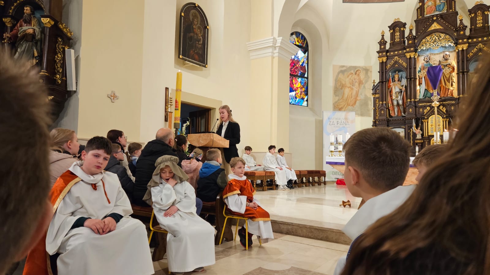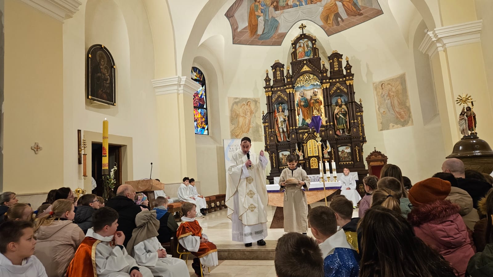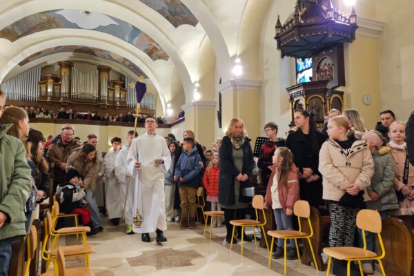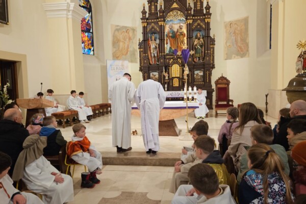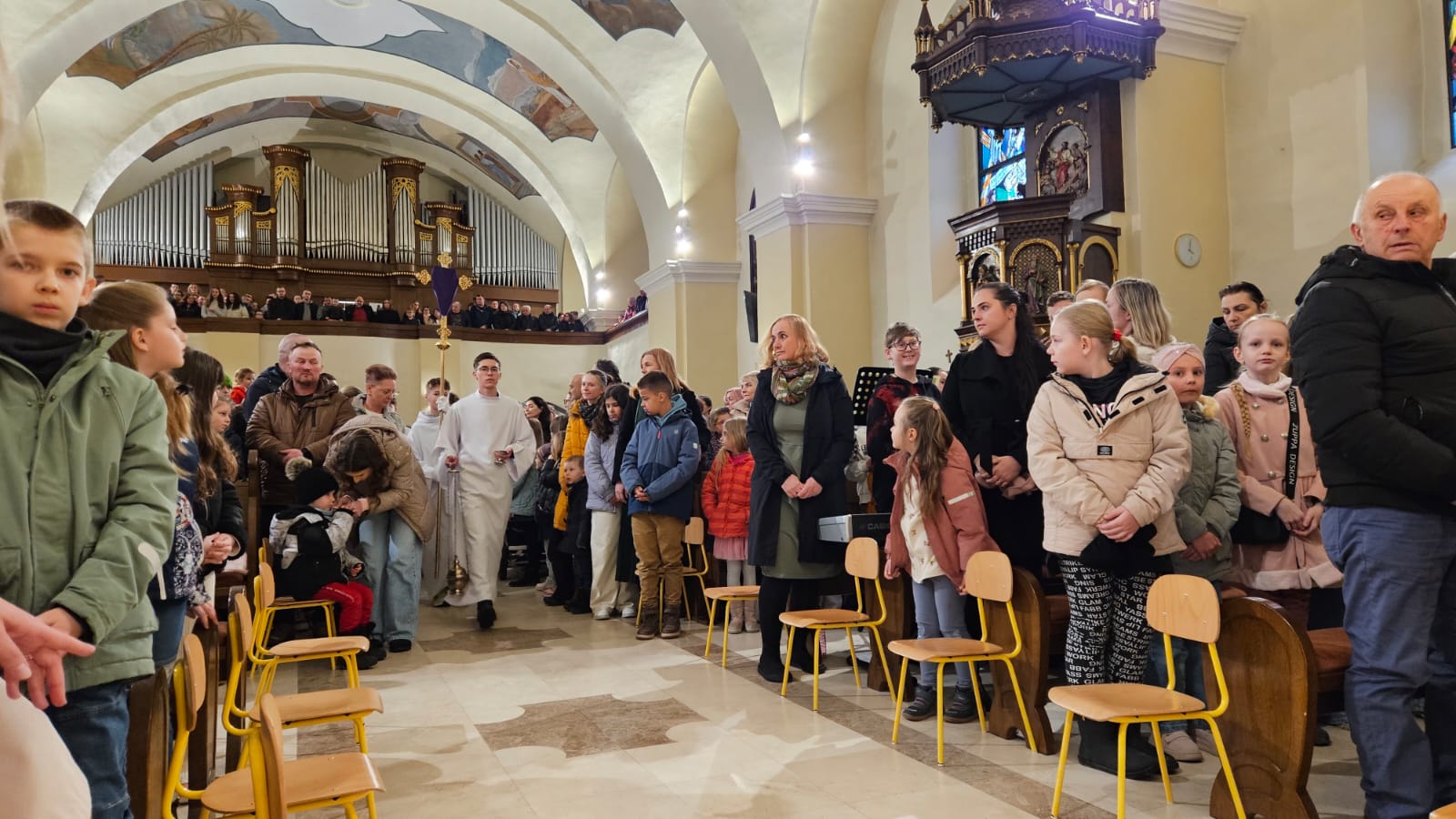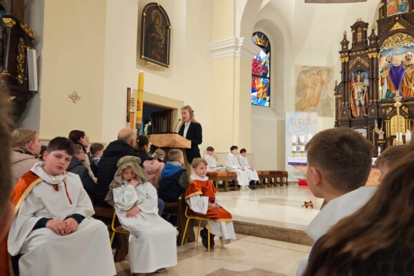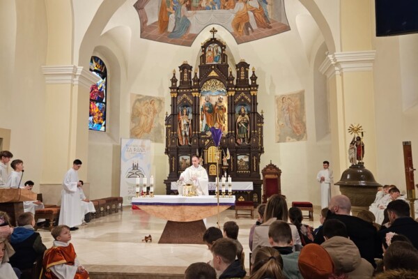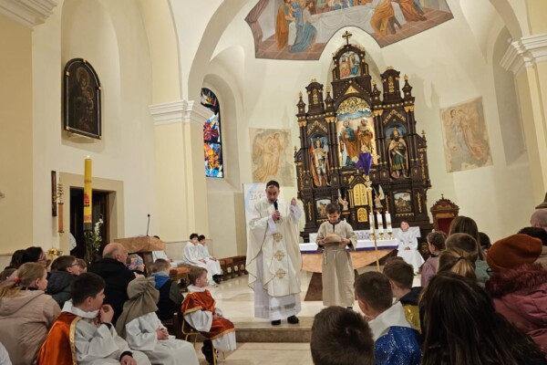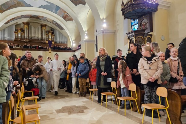 Pri sv. omši na Zelený štvrtok, upriamil p. kaplán Martin pozornosť detí na Poslednú večeru a ustanovenie Eucharistie. V úvode kázne deti hádali, čo je ukryté, akú náplň v sebe skrýva sladké pečivo. Následne pri rozlomení chleba uvažovali, či tiež môžeme hovoriť o nejakej náplni v nadväznosti na Eucharistiu. V odpovediach detí zazneli slová, ako Duch Svätý, obeta, láska…