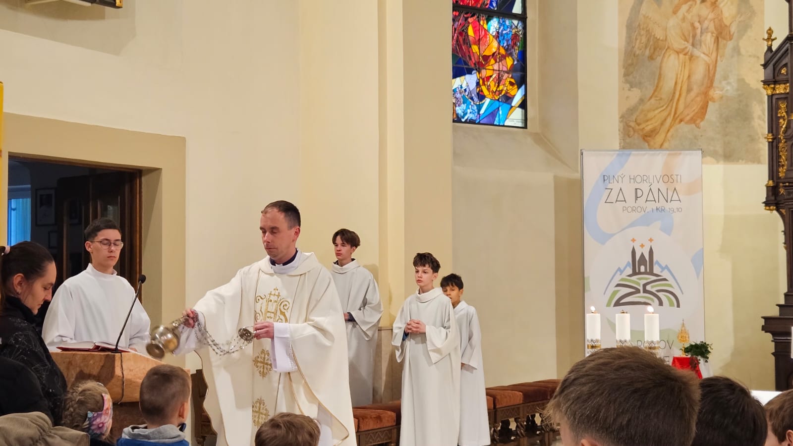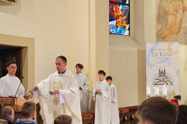 Zdroj Lásky je ukrytý v bohostánku. „Preto je veľmi dobré, že vy, deti sedíte počas sv. omše vpredu, v jeho blízkosti a cestou od prežehnania sa svätenou vodou môžete uvažovať o tejto Láske“, povedal p. kaplán. Tiež deti povzbudil, že aj cestou, keď prechádzajú okolo kostola, môžu pozdraviť Pána Ježiša v bohostánku.