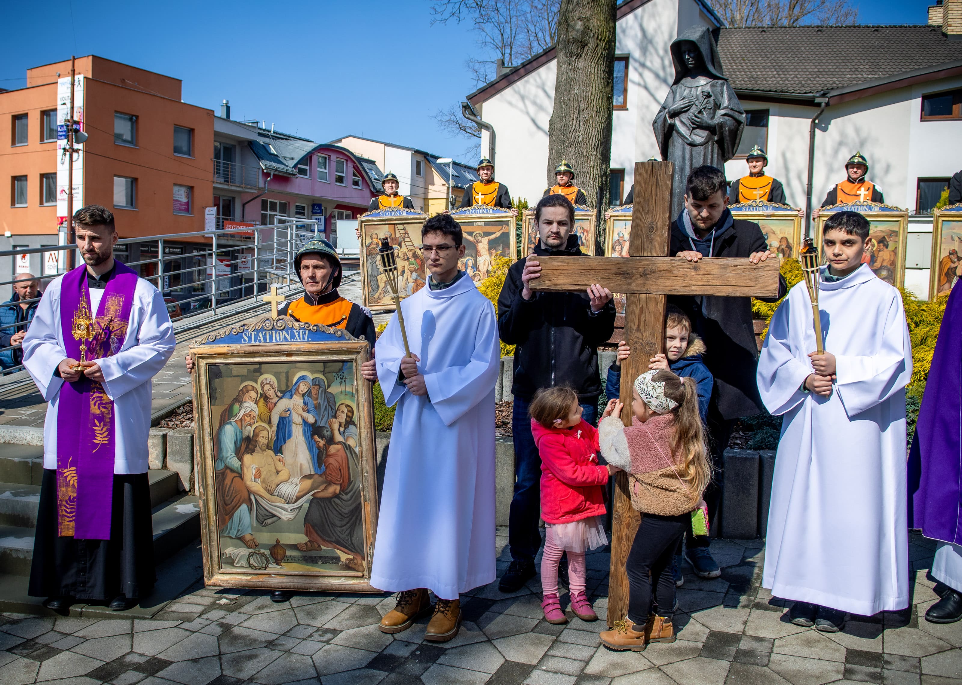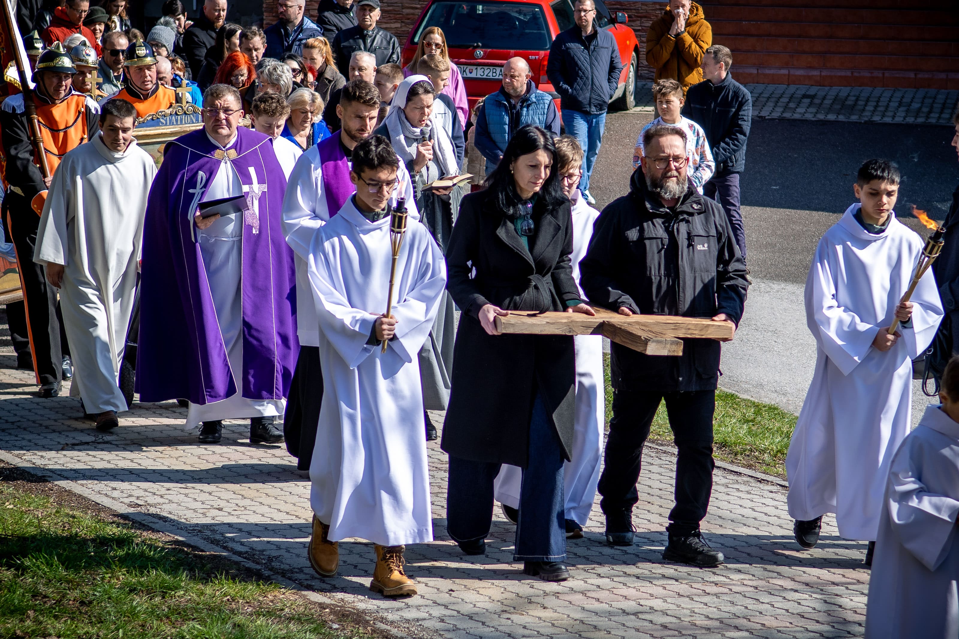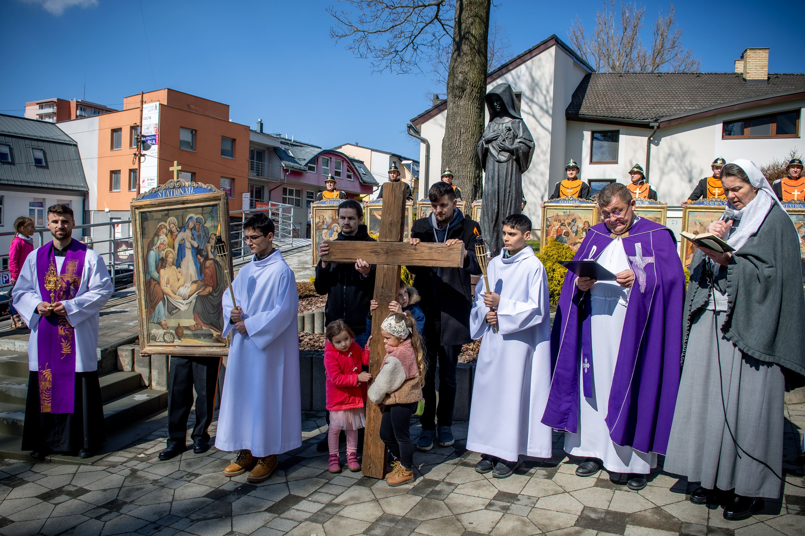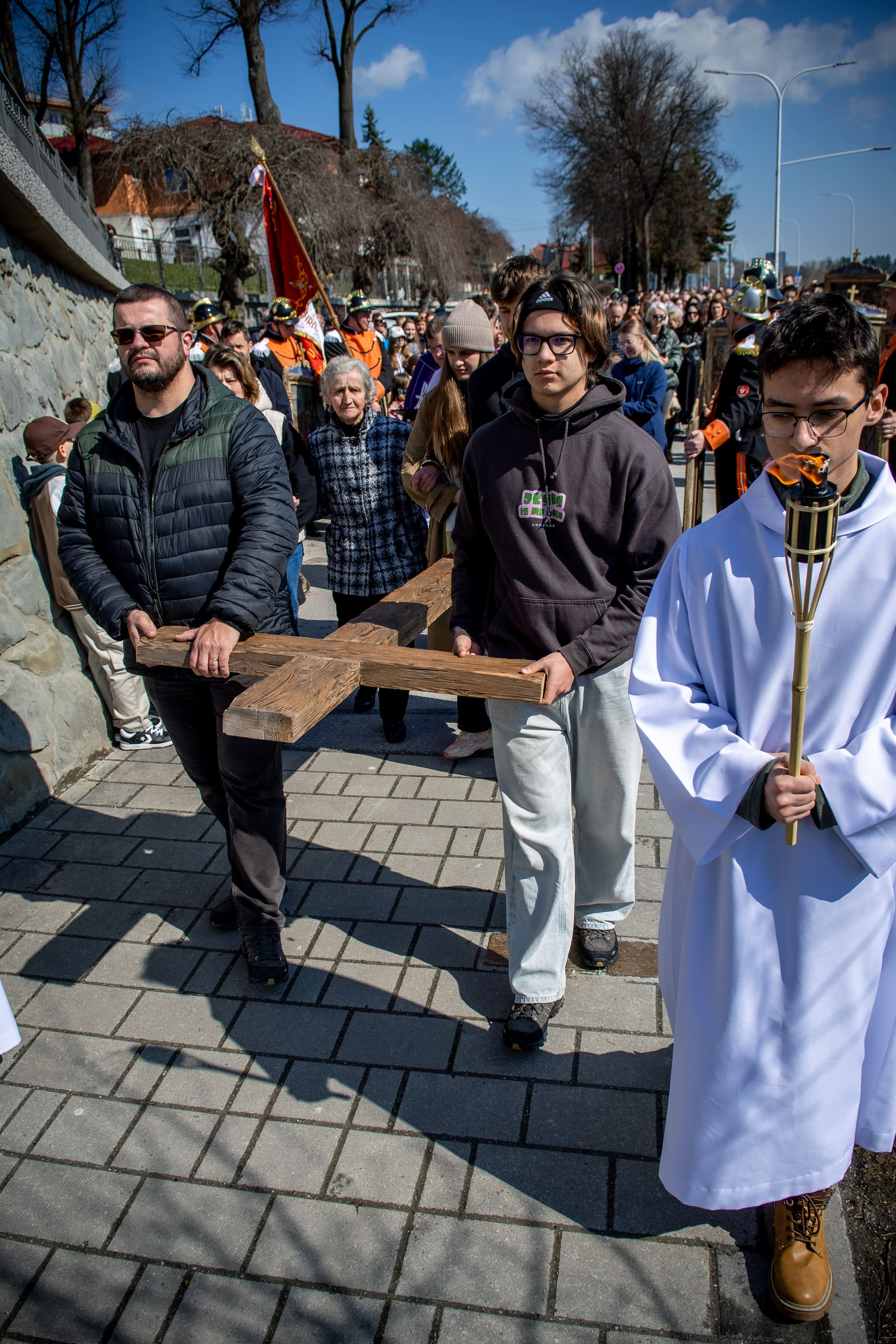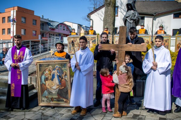 Na Veľký piatok sme sa modlili krížovú cestu kráčajúc ulicami nášho mesta. Tento rok, ktorý je pre našu Spišskú diecézu jubilejný, nás jednotlivými zastaveniami sprevádzal sv. Martin, resp. jeho relikvie. Pôvodné obrazy krížovej cesty niesli námestovskí dobrovoľnícki hasiči, kríž zase rodiny či spoločenstvá. Texty krížovej cesty „rozprávali“ o umučení Pána Ježiša, ale aj o jednotlivých udalostiach zo života sv. Martina – o prijatí úradu, o odpustení, fyzickom či duševnom utrpení.