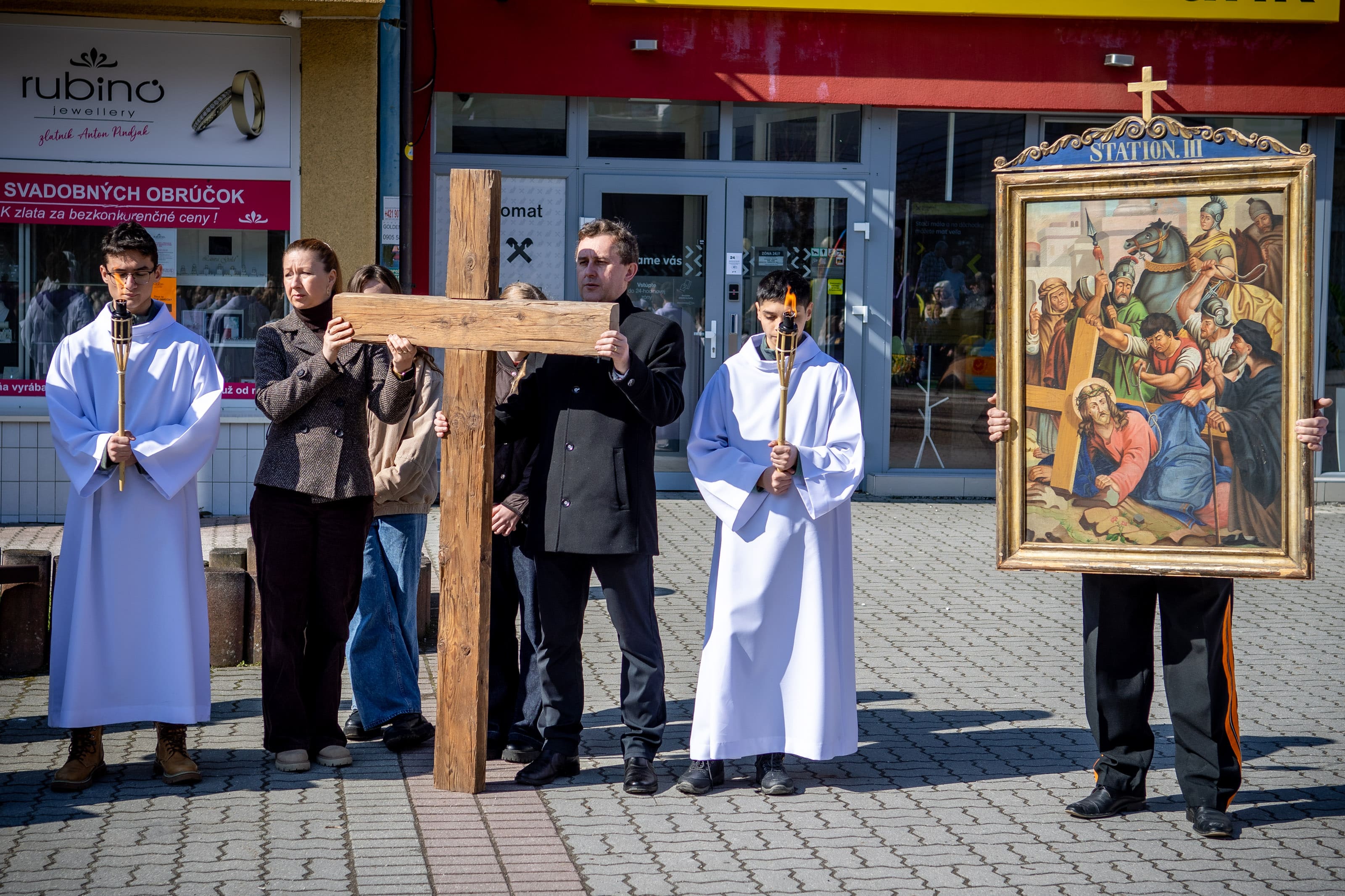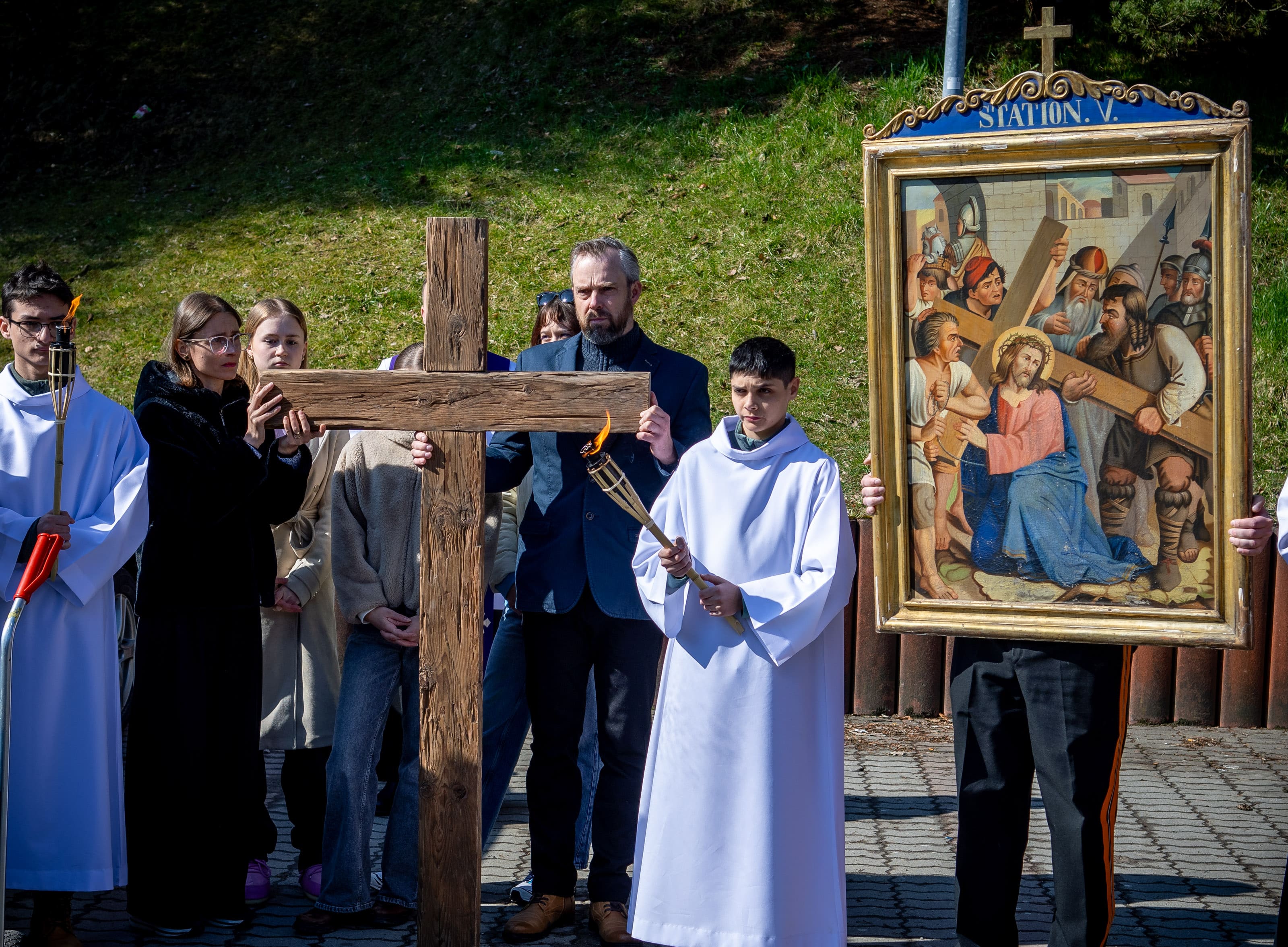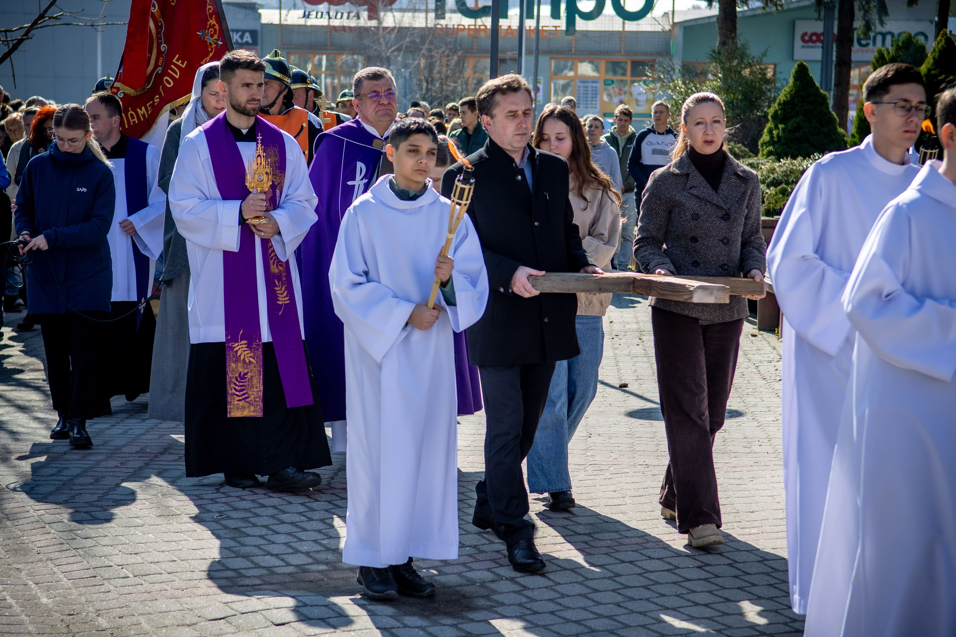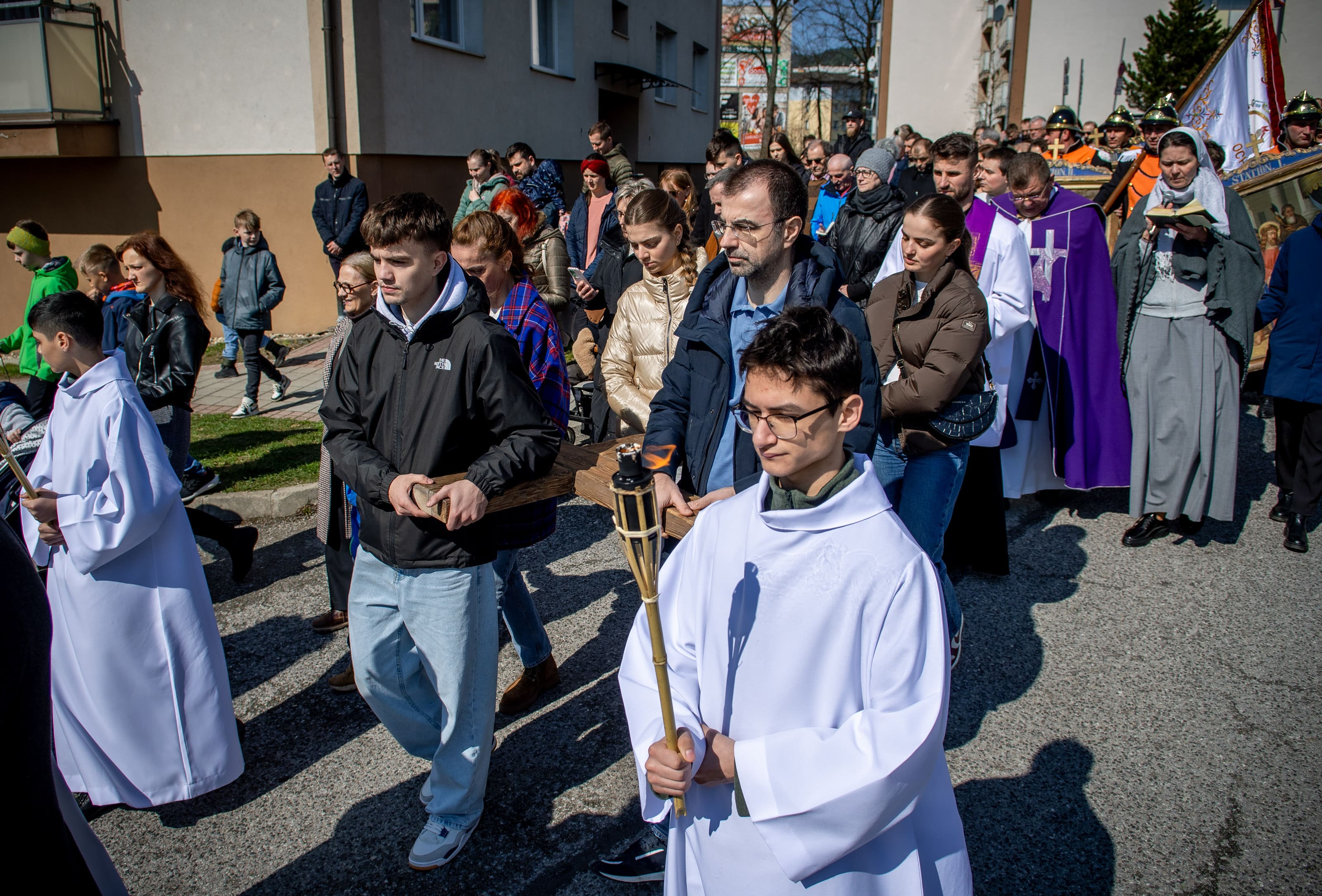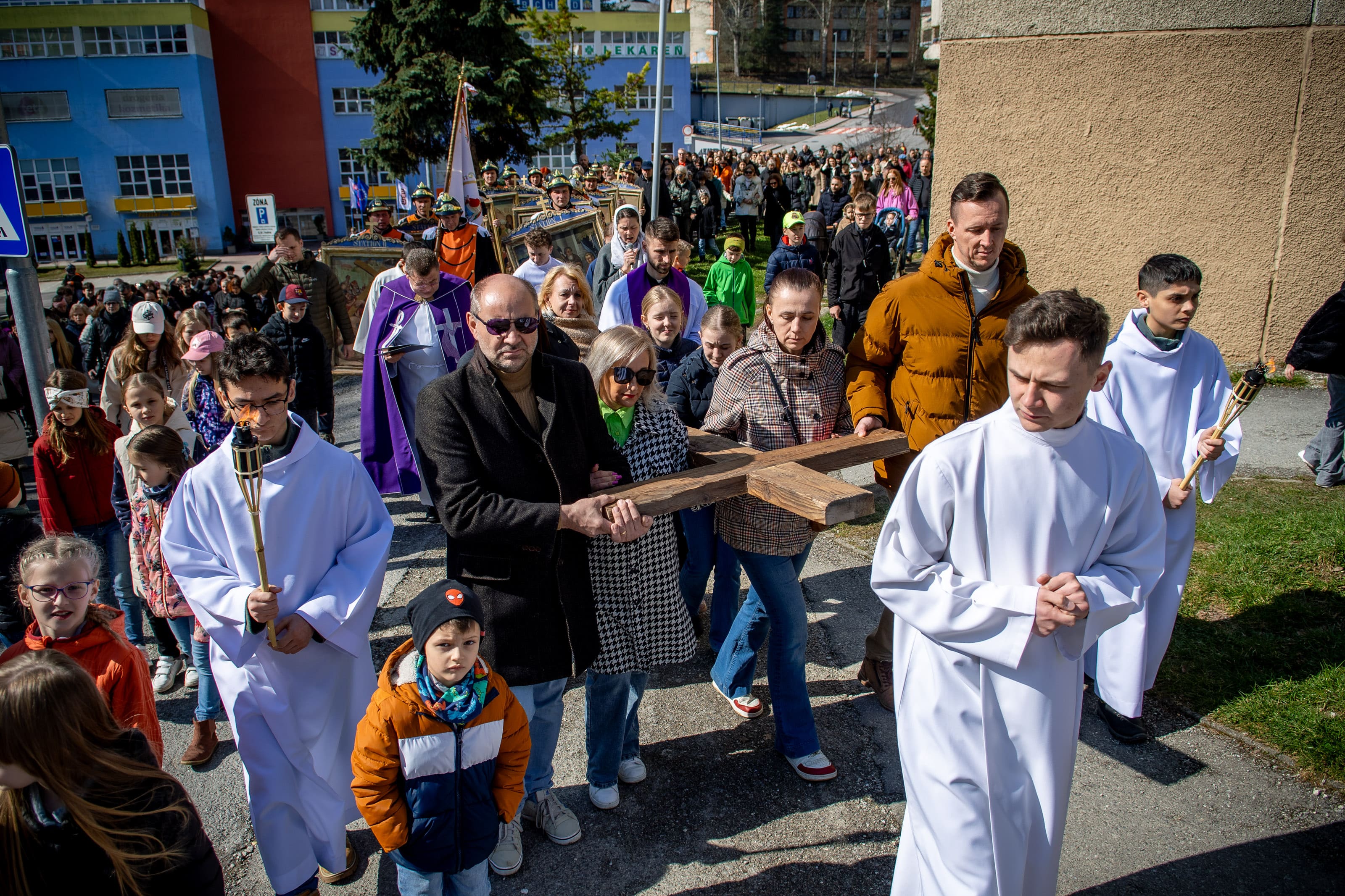 Na Veľký piatok sme sa modlili krížovú cestu kráčajúc ulicami nášho mesta. Tento rok, ktorý je pre našu Spišskú diecézu jubilejný, nás jednotlivými zastaveniami sprevádzal sv. Martin, resp. jeho relikvie. Pôvodné obrazy krížovej cesty niesli námestovskí dobrovoľnícki hasiči, kríž zase rodiny či spoločenstvá. Texty krížovej cesty „rozprávali“ o umučení Pána Ježiša, ale aj o jednotlivých udalostiach zo života sv. Martina – o prijatí úradu, o odpustení, fyzickom či duševnom utrpení.