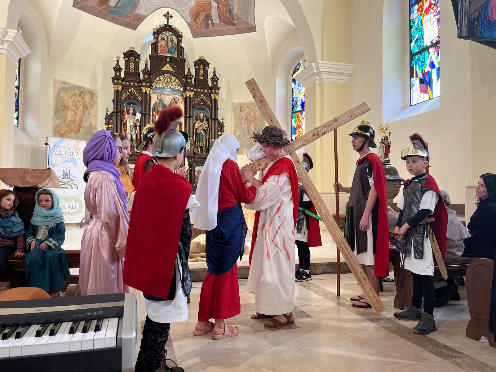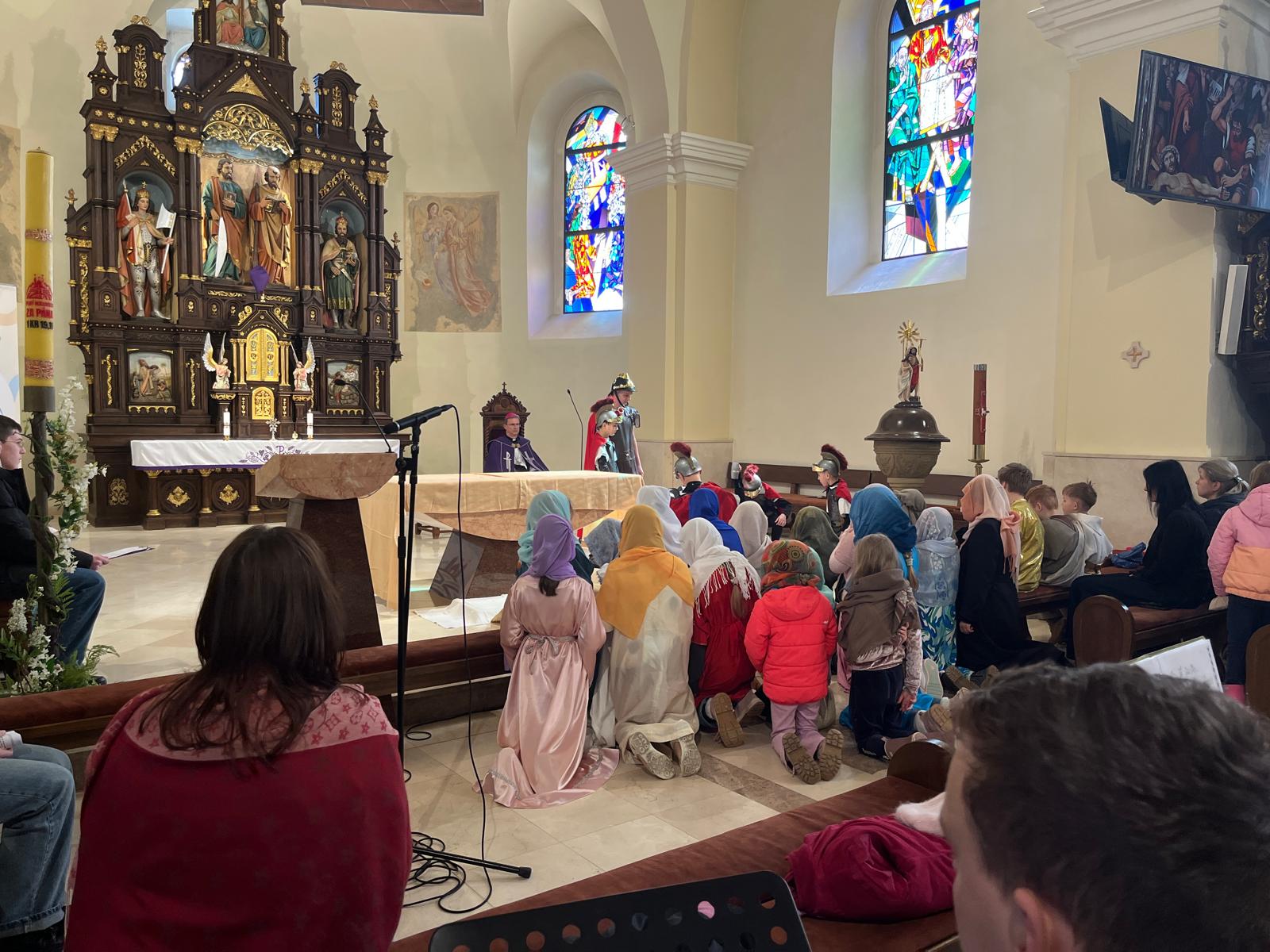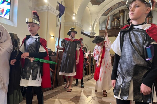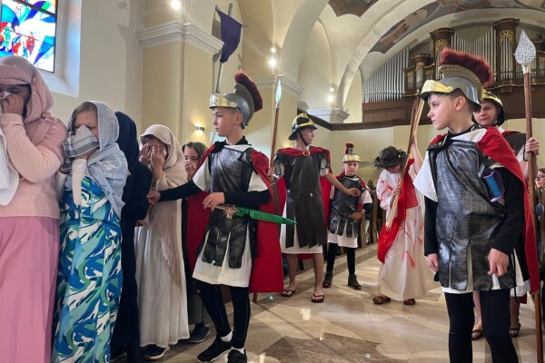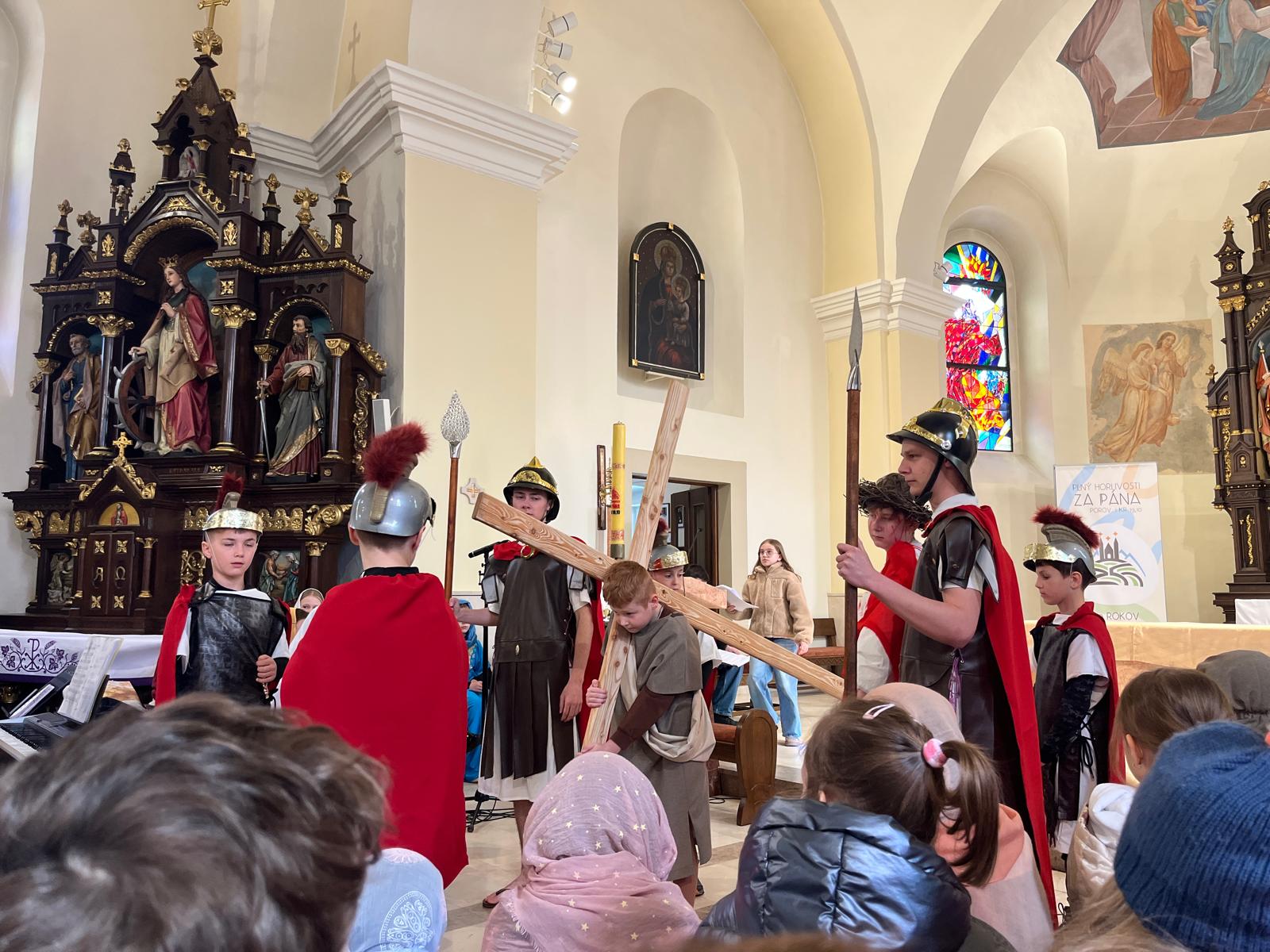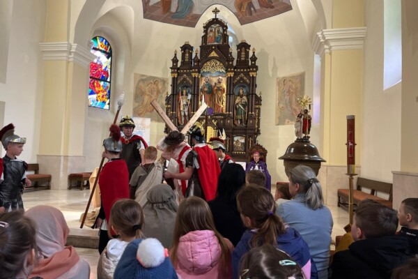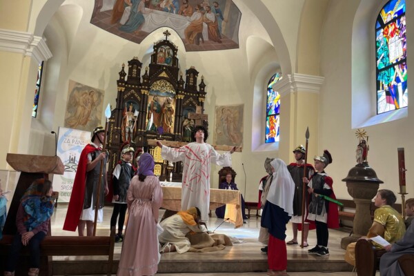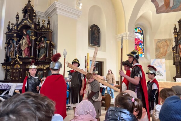 V stredu dopoludnia 1. apríla 2026 vo Veľkom týždni, na prosbu pani riaditeľky cirkevnej školy, naše deti radi zopakovali dramatizovanú pobožnosť krížovej cesty pre svojich spolužiakov a kamarátov zo ZŠ sv. Gorazda v Námestove.