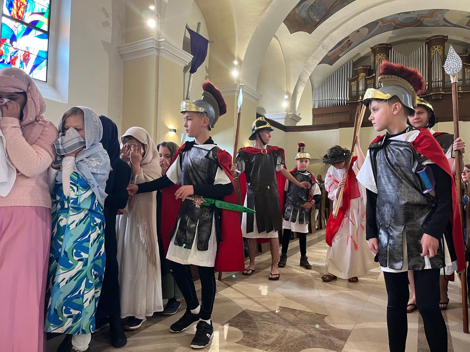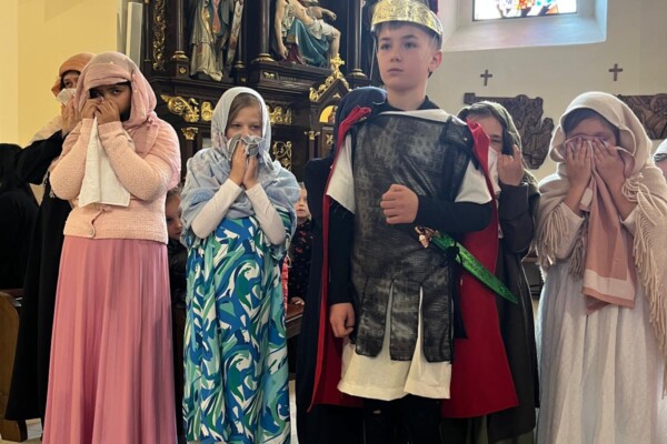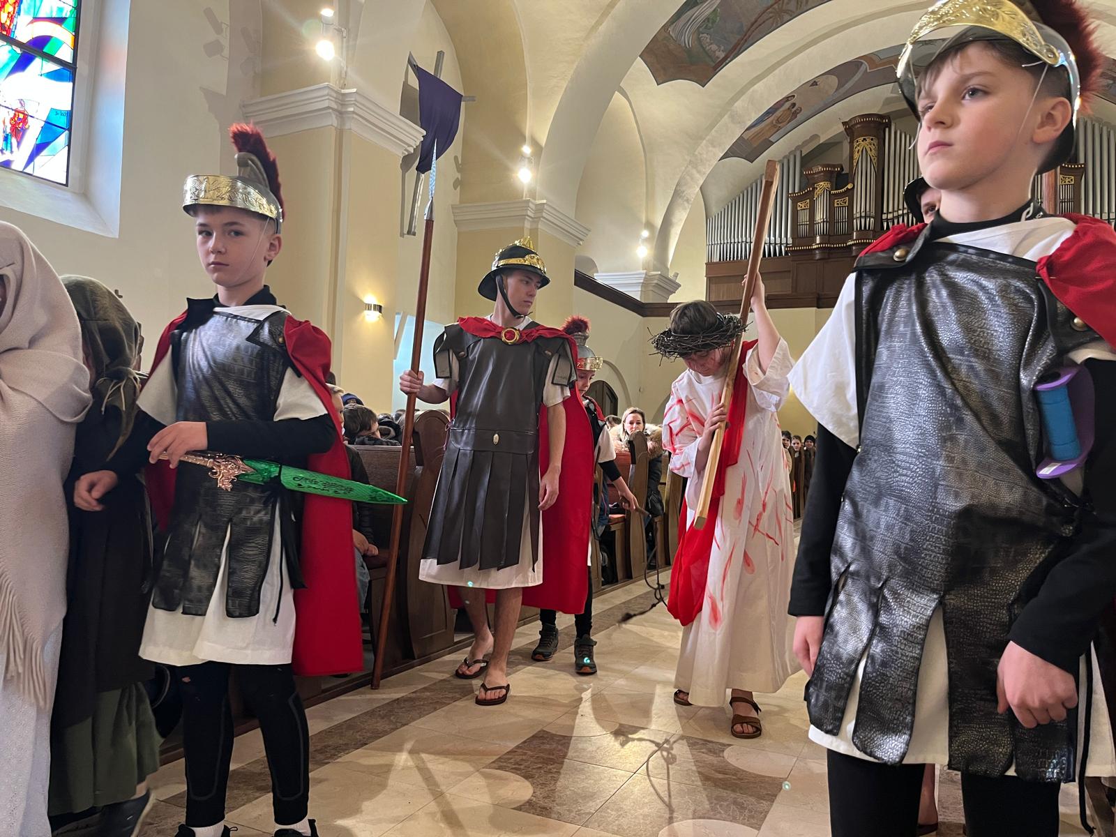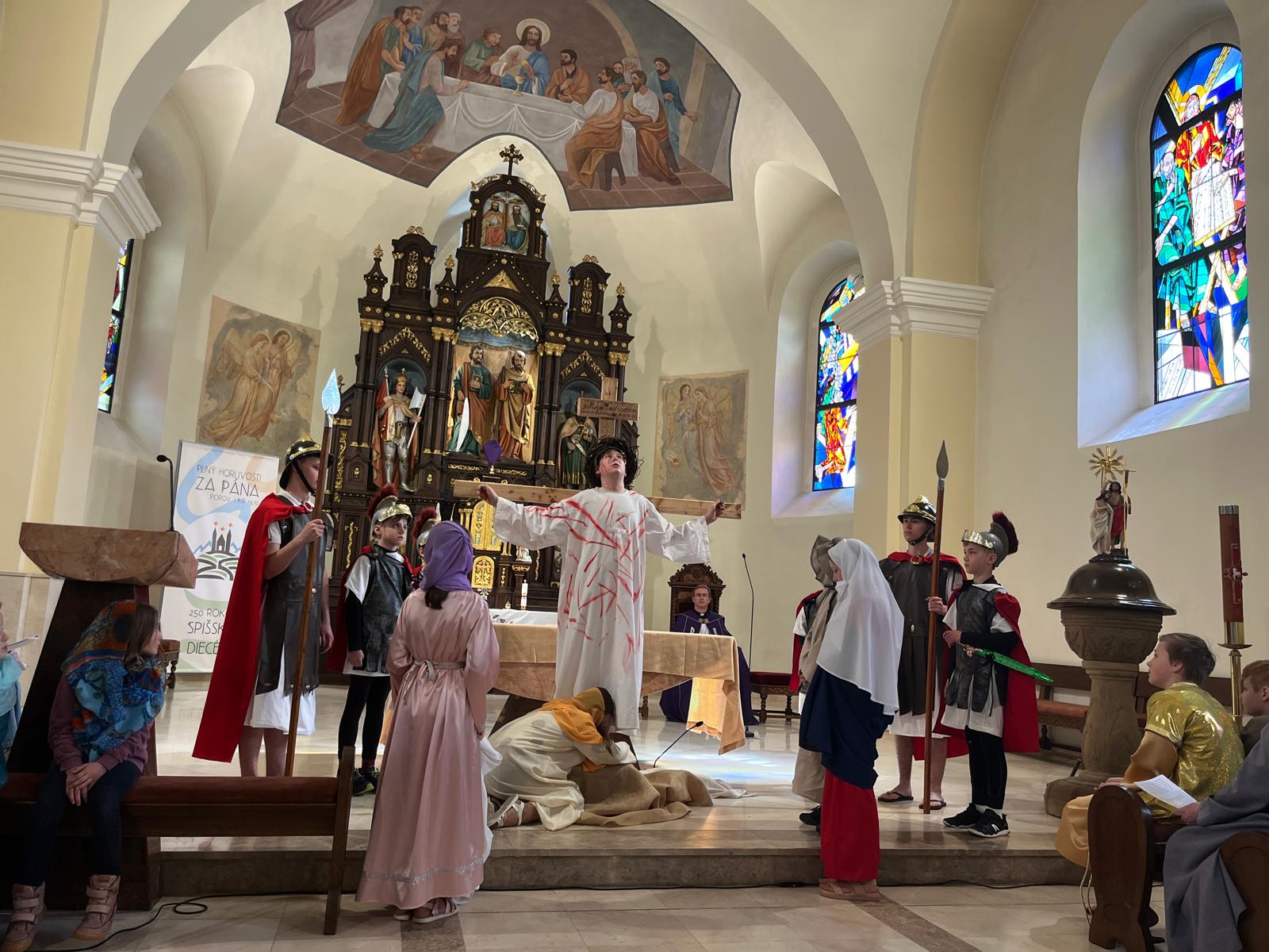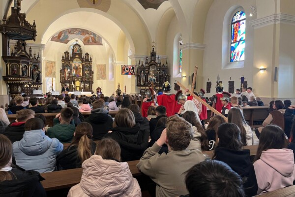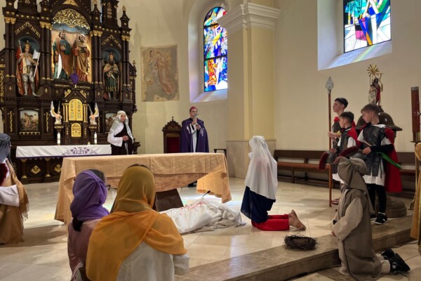 V stredu dopoludnia 1. apríla 2026 vo Veľkom týždni, na prosbu pani riaditeľky cirkevnej školy, naše deti radi zopakovali dramatizovanú pobožnosť krížovej cesty pre svojich spolužiakov a kamarátov zo ZŠ sv. Gorazda v Námestove.