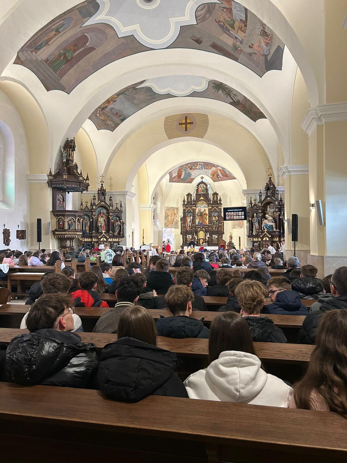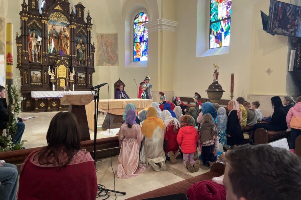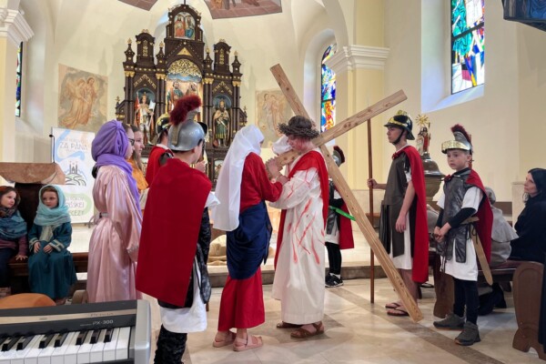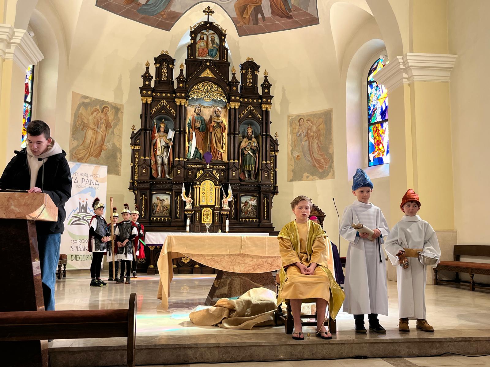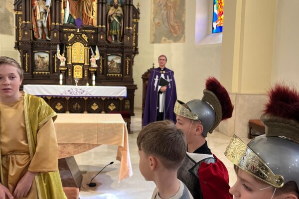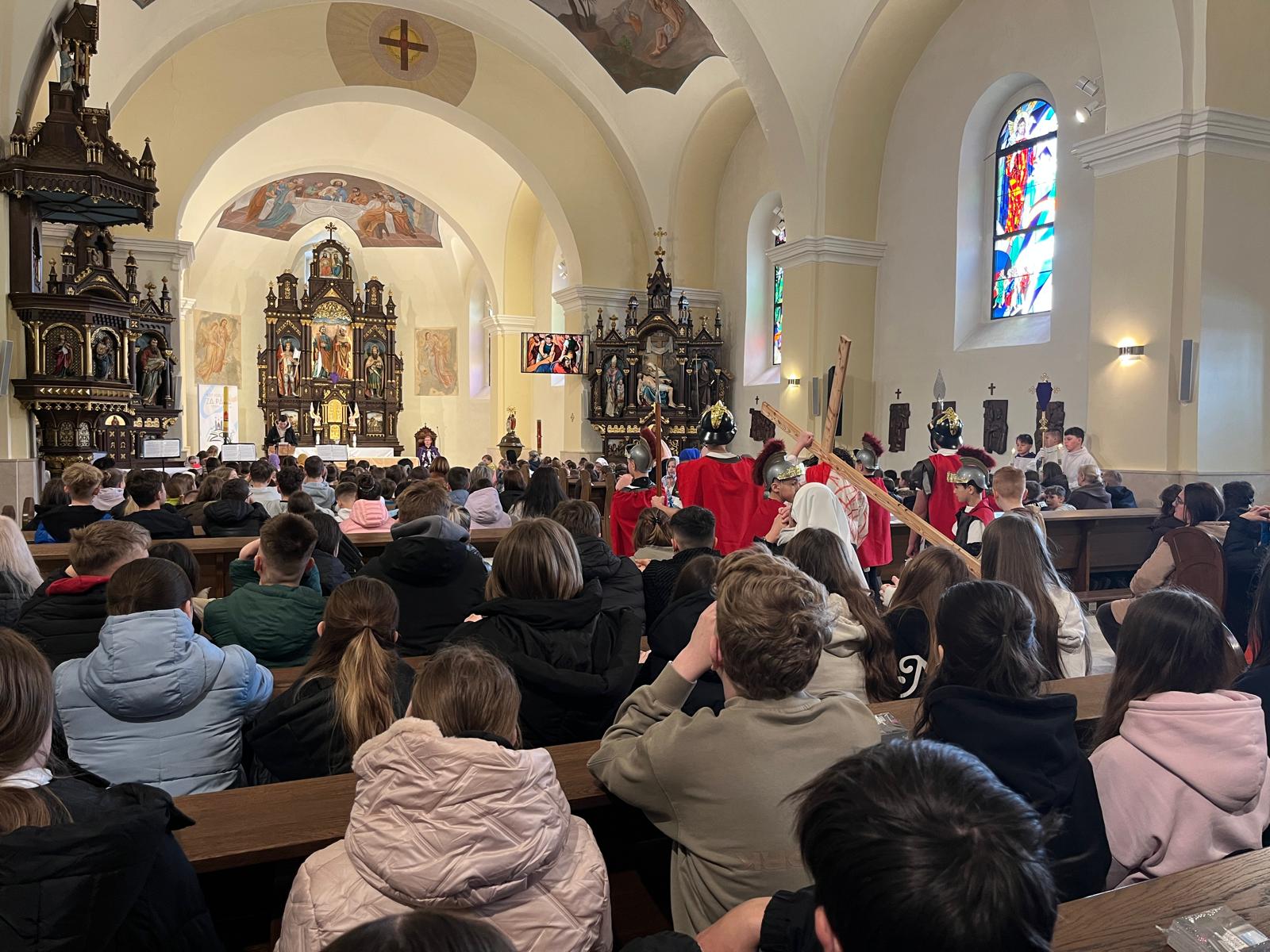 V stredu dopoludnia 1. apríla 2026 vo Veľkom týždni, na prosbu pani riaditeľky cirkevnej školy, naše deti radi zopakovali dramatizovanú pobožnosť krížovej cesty pre svojich spolužiakov a kamarátov zo ZŠ sv. Gorazda v Námestove.
